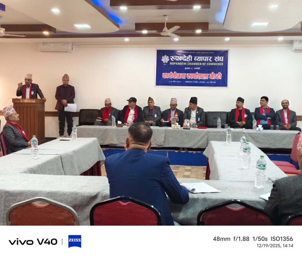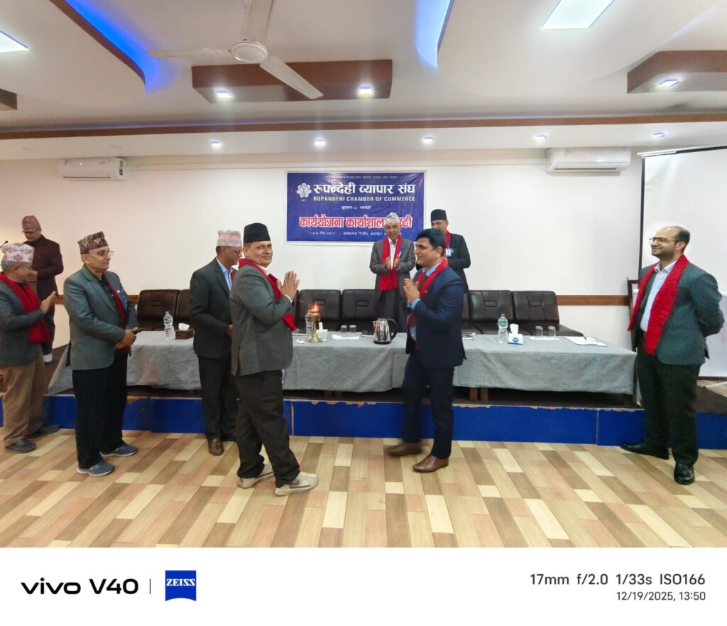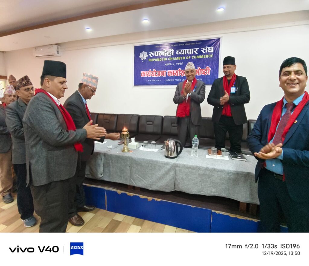 चितवनकाे कविलास रिसोर्टमा जारी रुपन्देही व्यापार संघकाे कार्ययाेजना गाेष्ठिका केही झलकहरु। By Rupandehi Chamber of Commerce December 20, 2025 10 views 0 Share: २०८२-०९-०४ Views: 10 views