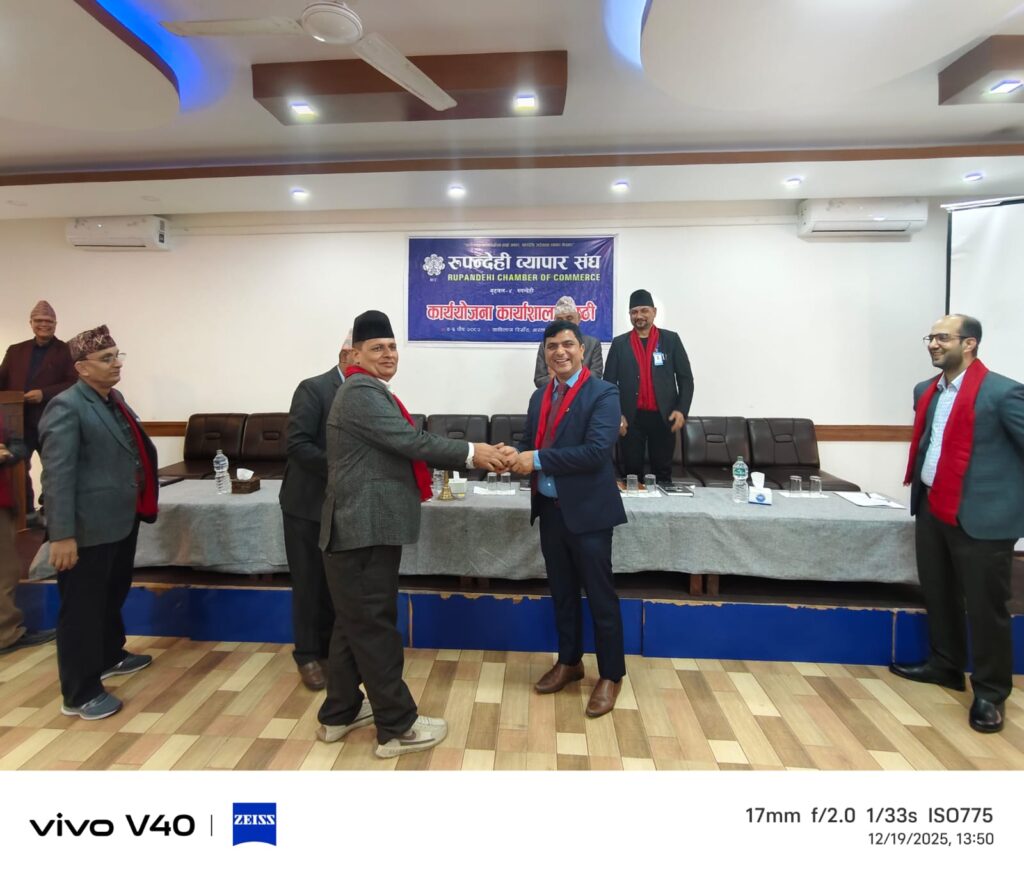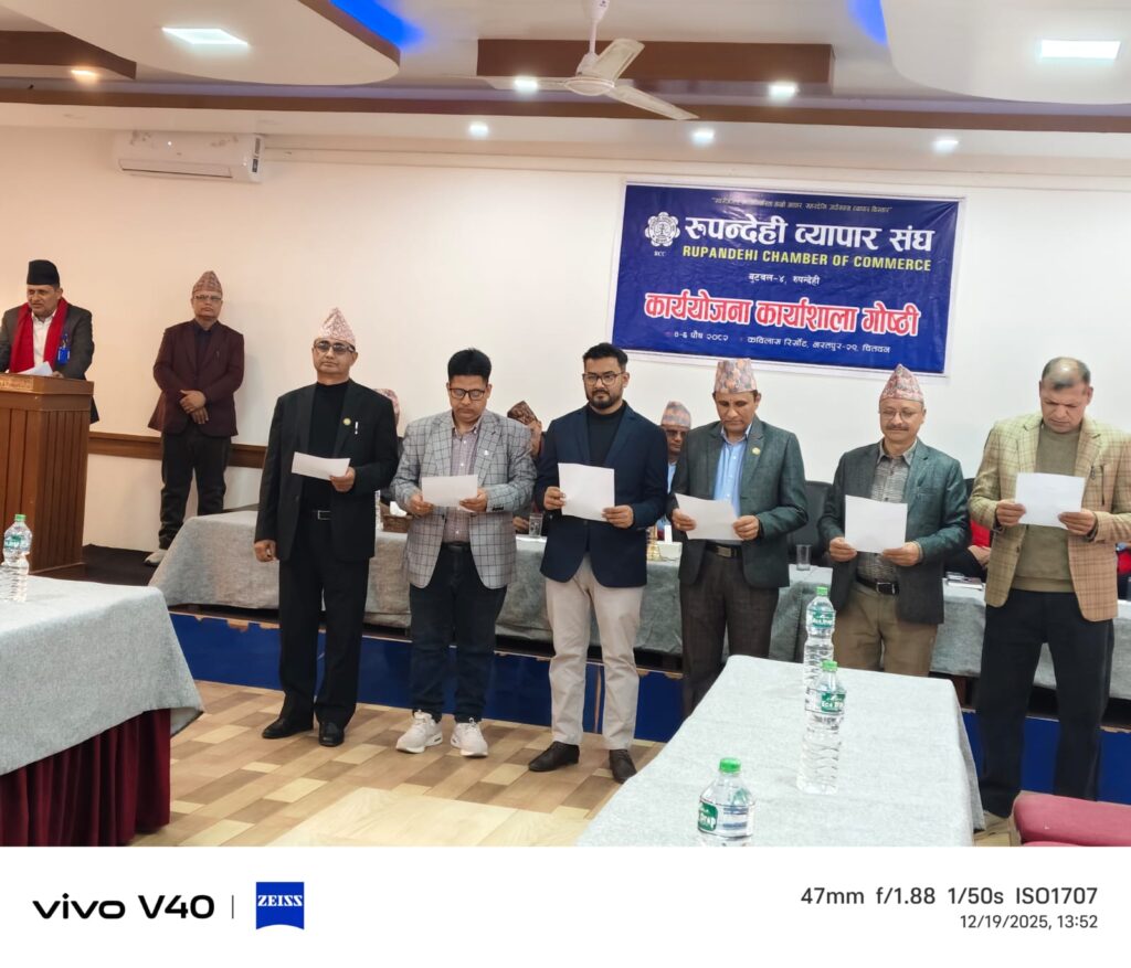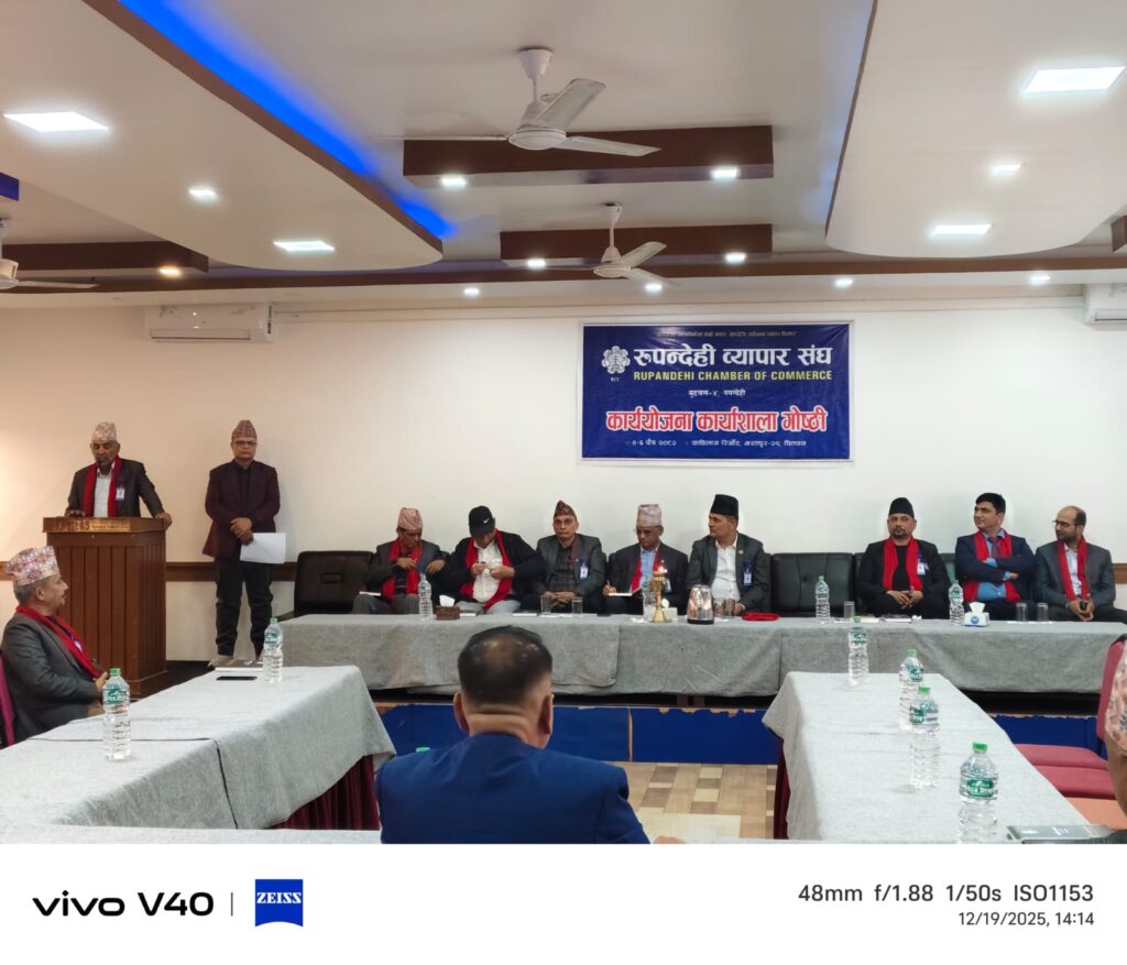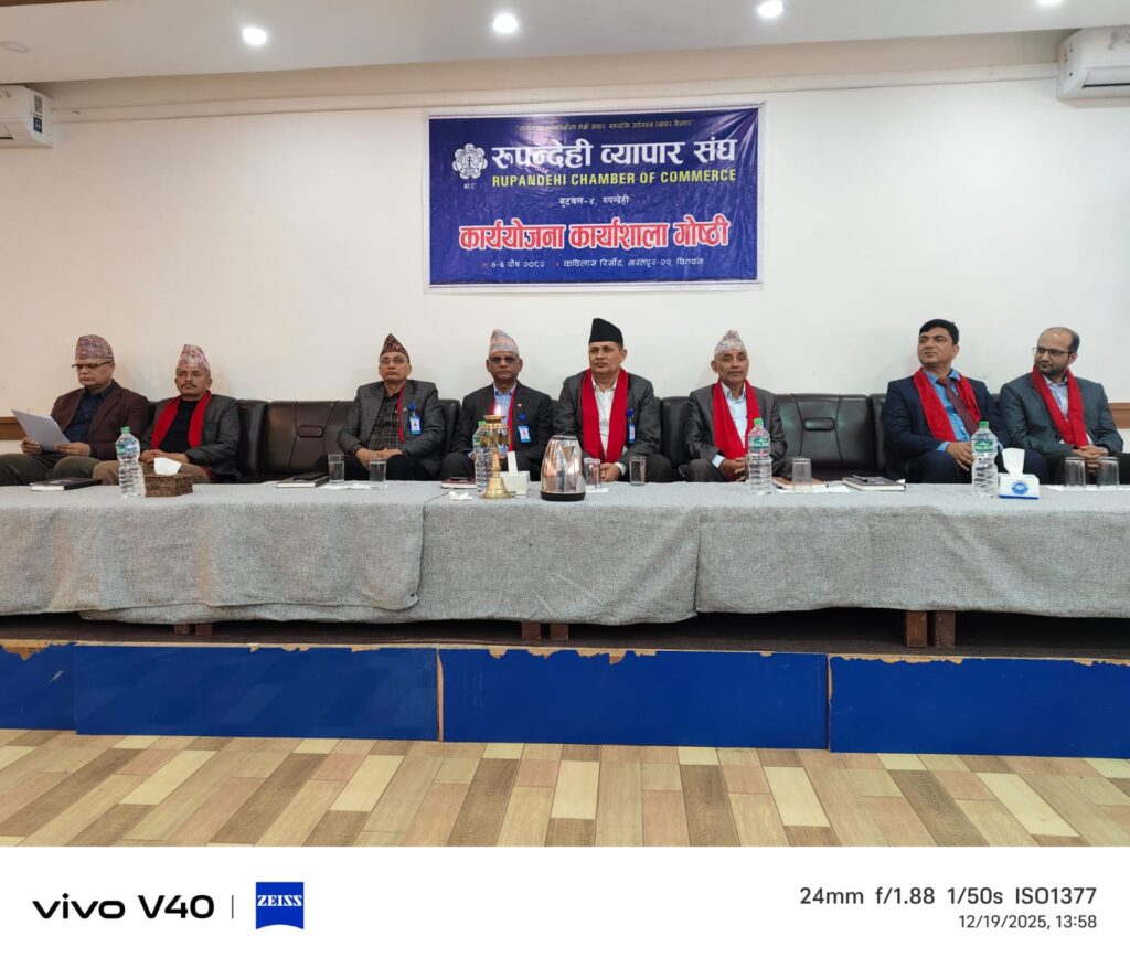 चितवनकाे कविलास रिसोर्टमा जारी रुपन्देही व्यापार संघकाे कार्ययाेजना गाेष्ठिका केही झलकहरु। By Rupandehi Chamber of Commerce December 20, 2025 10 views 0 Share: २०८२-०९-०४ Views: 10 views