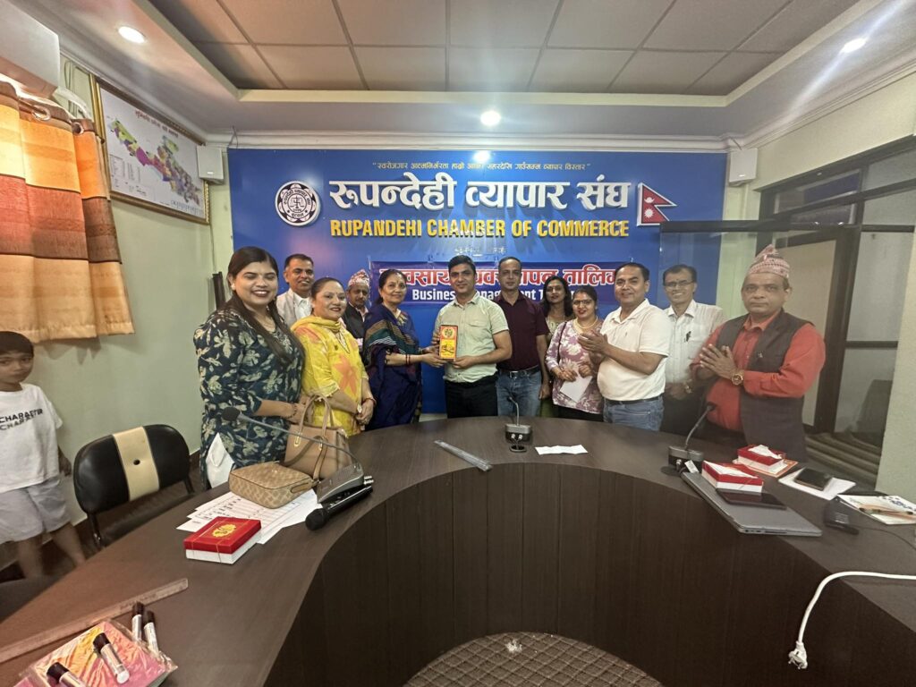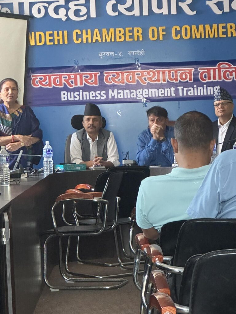 बुटवल, २६ गते । रुपन्देही व्यापार संघको आयोजनामा एक दिने व्यवसाय व्यवस्थापन तालिम सम्पन्न भएको छ । संघ अन्तर्गतका विभिन्न वस्तुगत उपसमितिहरुलाई लक्षित गरी संघको सचिवालयमा तालिमको आयोजना गरिएको हो । संघ अन्र्तगत हार्डवेयर, औषधि, क्याम्पसन, पुस्तक तथा स्टेशनरी, व्याग, जुत्ताचप्पल, कस्मेटिक तथा गिफ्ट, पोल्ट्रीजन्य, सुनचाँदी, अटोमोवाइल्स, किराना, इलेक्ट्रिक तथा इलेक्ट्रोनिक्स, महिला उद्यमी, डिलर्स, फेन्सी, गल्ला तथा खाद्यन्न, सूचना प्रविधि, कृषि, युवा उद्यमी, होजियारी, अन्तरदेशीय व्यापार समन्वय, थान कपडा, होटल तथा रेष्टुरेण्ट लगायत उपसमितिबाट प्रतिनिधिमुलक सहभागितामा तालिम सम्पन्न भएको संघका सचिव एवं कार्यक्रम संयोजक वृन्दा भट्टराई आचार्यले बताउनु भयो ।