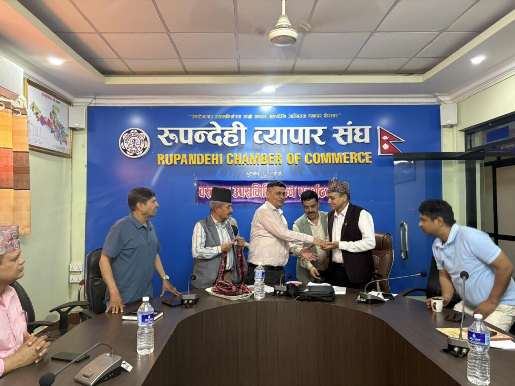 बुटवल १७ चैत्र । आफ्नो वार्षिक कार्यतालिका अन्तरगत रुपन्देही व्यापार संघमा आबद्ध विभिन्न प्रकृतिका व्यवसाय संचालन गर्ने व्यवसायी सदस्यहरुलाई गोलबन्द गर्ने लक्ष्य अनुसार वस्तुगत भेलालाई तिव्रता दिएको छ । रुपन्देही व्यापार संघमा आबद्ध थान कपडा व्यवसायीहरुको वृहत भेलाले वस्तुगत उपसमिति पुर्नगठन गरेको छ । संघको सचिवालयमा भएको उक्त भेलाले भिष्मप्रसाद सापकोटाको संयोजकत्वमा ७ सदस्यीय थान कपडा वस्तुगत उपसमिति गठन गरेको हो ।