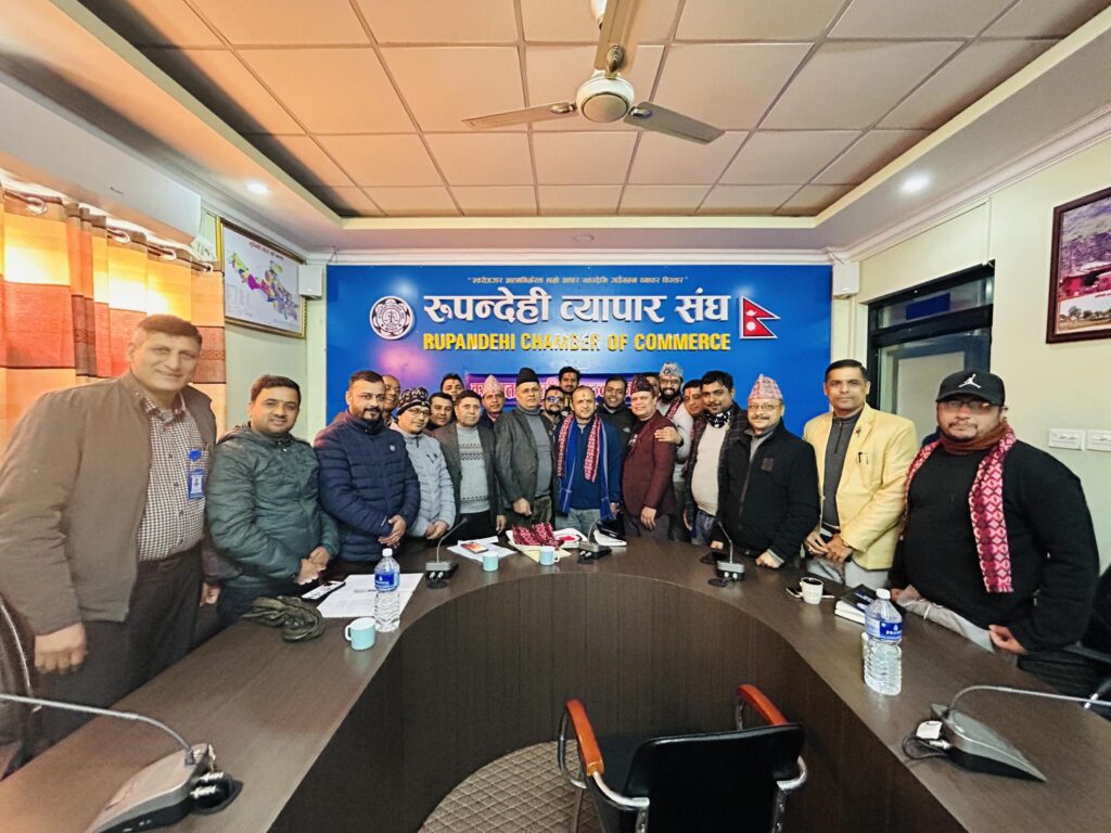 बुटवल, २२ पौष । रुपन्देही व्यापार संघको निर्वाचित नयाँ कार्यसमितिले संघमा आबद्ध विभिन्न प्रकृतिका व्यवसायीहरुको भेला तथा वस्तुगत उपसमिति विस्तार एवं पुर्नगठन गर्ने कामलाई तिव्रता दिएको छ । संघमा आबद्ध व्यवसायीहरुका समस्याको पहिचान र संगठन सुदृढिकरण गर्ने वार्षिक कार्ययोजना अनुसार वस्तुगत उपसमिति गठन गरिएको संघले जनाएको छ । यसैक्रममा मंगलबार संघमा आबद्ध हार्डवेयर तथा निर्माण सामाग्री व्यवसायीहरुको भेला सम्पन्न भएको छ । संघको सचिवालयमा सम्पन्न उक्त भेलाले लक्ष्मण घिमिरेको संयोजकत्वमा ९ सदस्यीय हार्डवेयर तथा निर्माण सामाग्री वस्तुगत उपसमिति गठन गरेको छ । उपसमितिको सह–संयोजकमा भुपेन्द्र पन्थ, सचिवमा सरद अधिकारी, कोषाध्यक्षमा शंकर न्यौपाने र सदस्यहरुमा शिव गैरे, सरोज खनाल, गणेश न्यौपाने, सन्दिप कसौधन र रमेश सापकोटा रहेका छन् ।